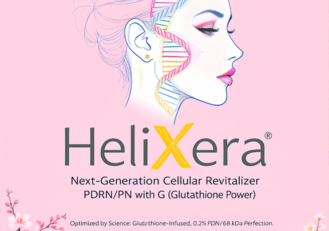 Helixera combines the world’s first synergistic blend of PDRN (68 kDa) and PN (1,521 kDa) with powerful Glutathione, delivering unmatched skin rejuvenation and regeneration. Our precisely engineered formulation features optimal molecular sizes and <0.2% concentration for superior solubility, absorption, and sustained results. Developed in collaboration with leading university scientists, Helixera sets a new gold standard for purity, consistency, and advanced skin care innovation.