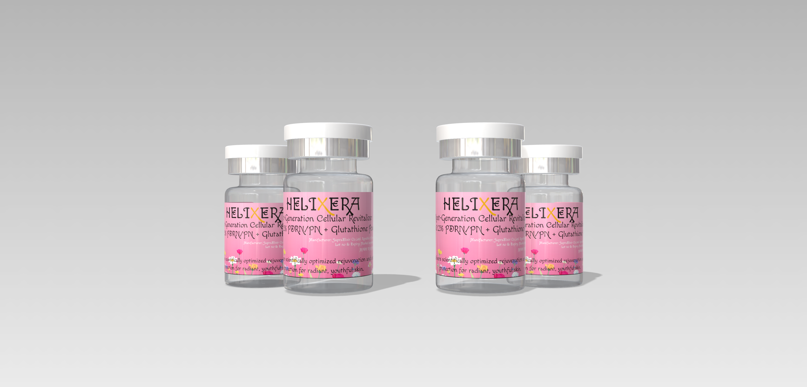 Helixera combines the world’s first synergistic blend of PDRN (68 kDa) and PN (1,521 kDa) with powerful Glutathione, delivering unmatched skin rejuvenation and regeneration. Our precisely engineered formulation features optimal molecular sizes and <0.2% concentration for superior solubility, absorption, and sustained results. Developed in collaboration with leading university scientists, Helixera sets a new gold standard for purity, consistency, and advanced skin care innovation.